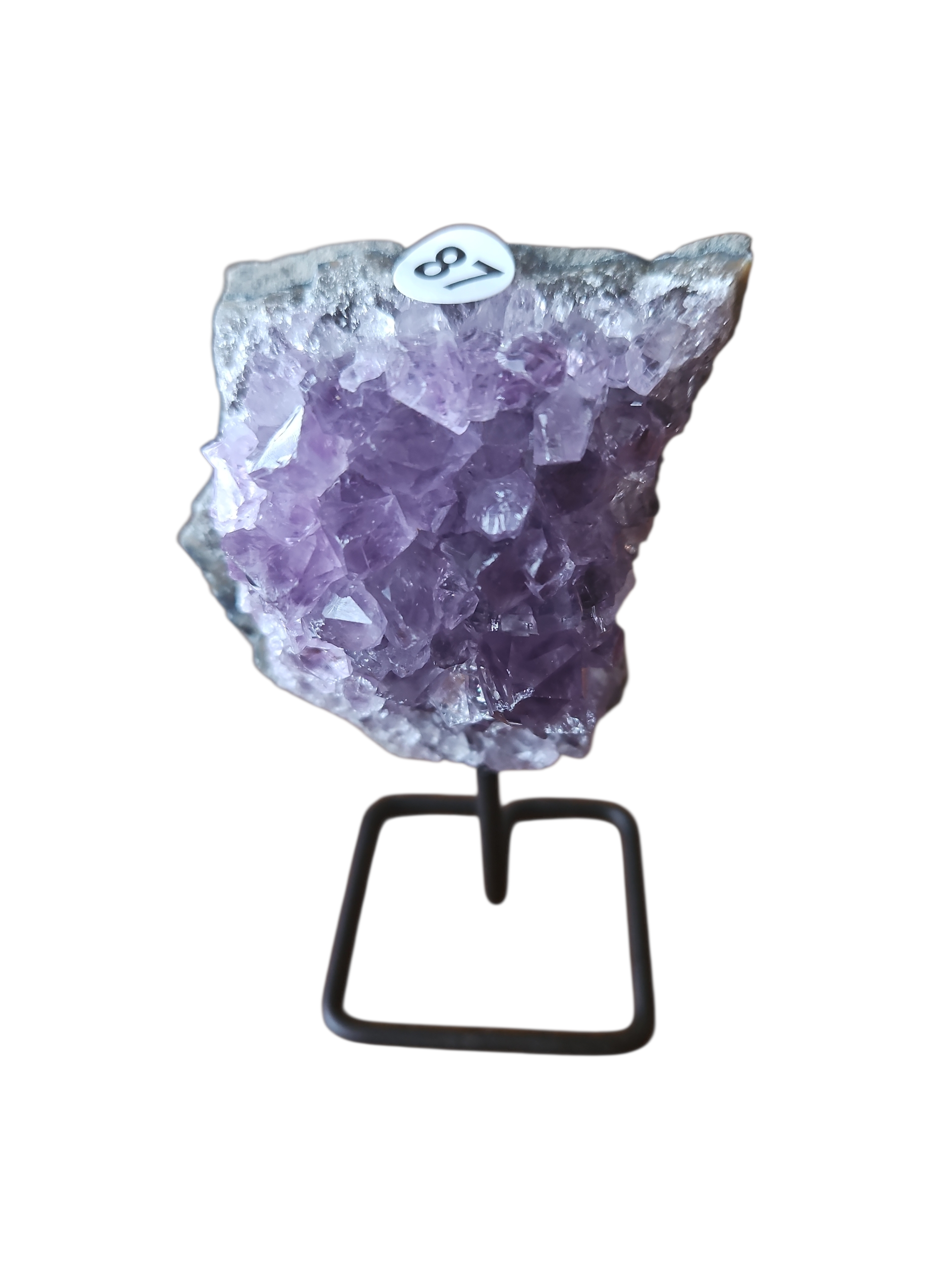 Deze Amethist  is een van de bekendste steensoorten. De diepe kleur paars spreekt tot de verbeelding maar ook haar esoterische eigenschappen zijn niet mis. Zo werkt de steen zuiverend en beschermend maar gaat het kracht arsenaal helemaal los bij de kruin en het 3e chakra. De steen helpt openen voor spirituele vaardigheden en deze te vergroten voor diegenen die ze al hebben ontdekt. Contact maken met hogere energie doe je gemakkelijk en veilig met Amethist. De krachtige paarse steen plaatst een lichtveld om haar drager (of een ruimte) heen die beschermt, voedt en heelt.