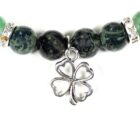 Elastische armband van kabamba jaspis en groene aventurijn, met klavertje vier bedel.*