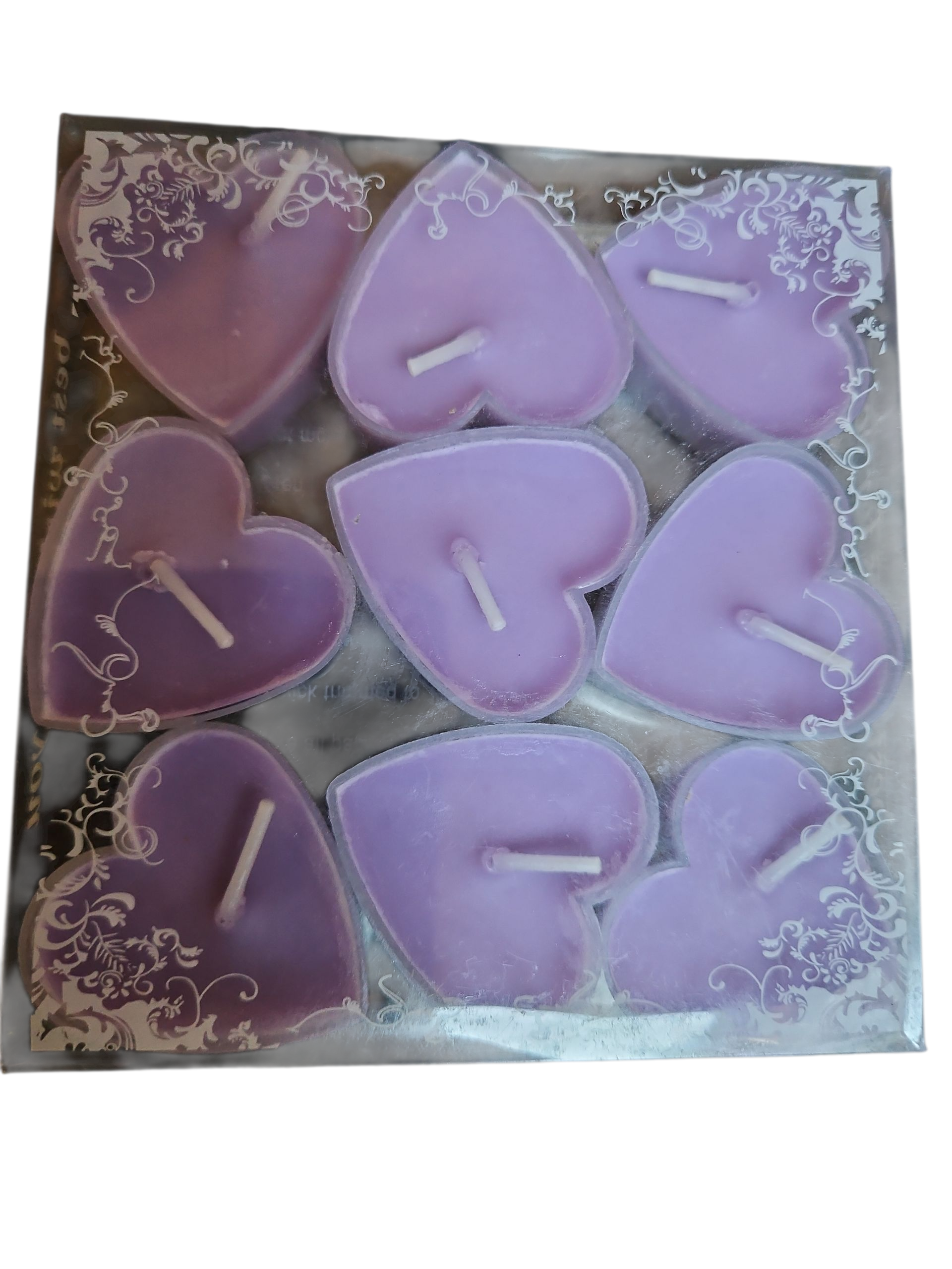 Hart kaarsjes 9 stuks kleur paars