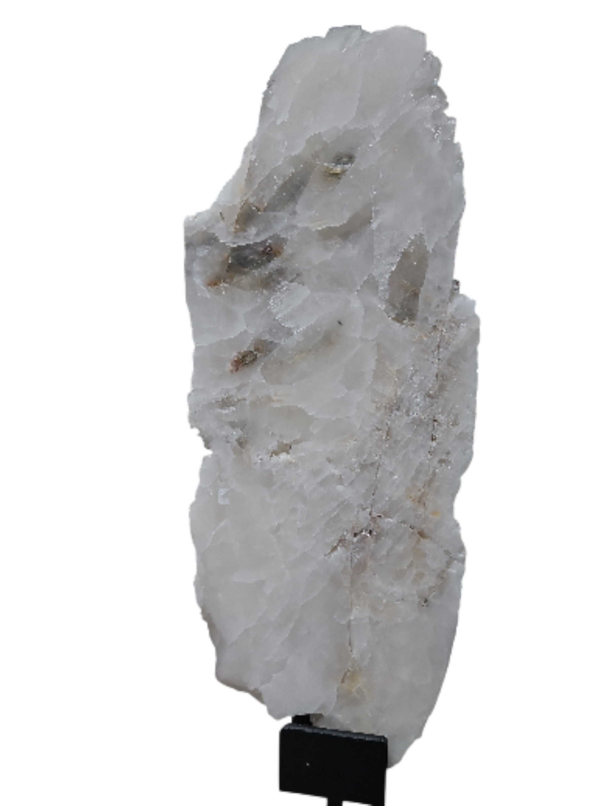 Bergkristal is wit tot kleurloos, doorzichtig en heeft een glasachtige glans. Deze steen behoort tot de macrokristallijne kwarts-familie.