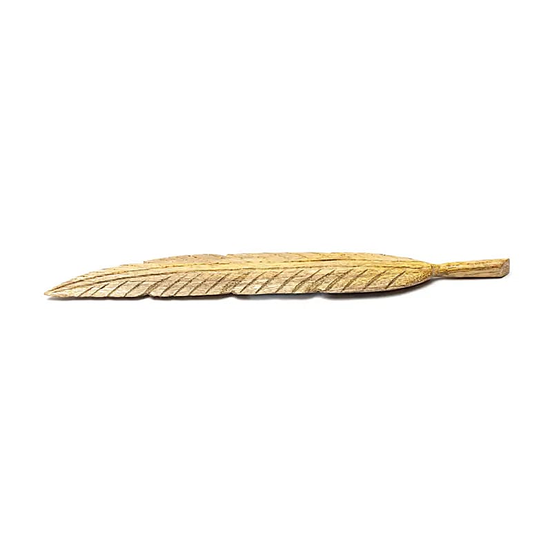 Decoratieve veer van mangohout. Geschikt als accessoire bij rookrituelen: gebruik om de rook tijdens het smudgen zachtjes te waaieren.