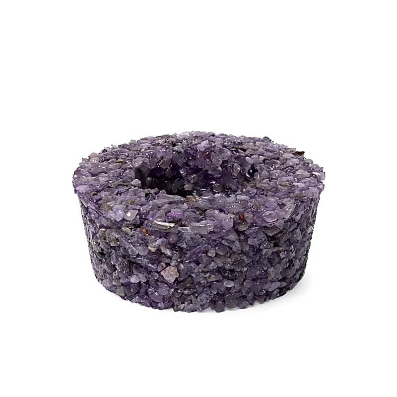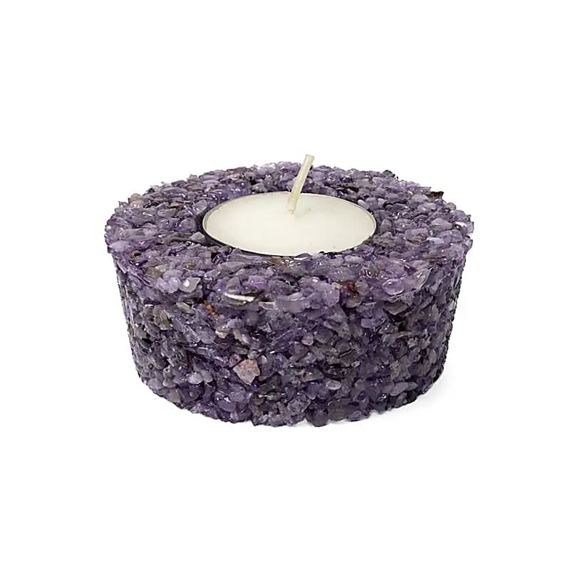 Ronde theelichthouder, gemaakt van stukjes amethist.