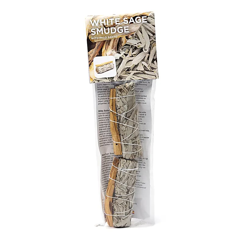 Witte salie smudge bundles bestaan uit samengebonden, gedroogde bladeren van Salvia apiana, hier gecombineerd met Palo Santo-hout. Het gebruik van aromatische plantenrook vindt zijn oorsprong in inheemse culturen van Noord-Amerika, waar verschillende botanicals werden ingezet afhankelijk van context en intentie. Tegenwoordig worden mengsels met witte salie gebruikt als plantaardige wierook voor ritueel gebruik, meditatie, lichaamswerk of het bewust markeren van een overgang of afronding.